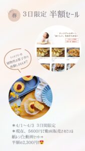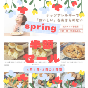 こんにちは。 三大ナッツ不使用の米粉のお菓子教室Dora-Kitchen です♪ 先日、ご報告しました動画販売の3日間半額セールについて詳しくご紹介致しますね(^-^) 今回の半額セールのレッスンは 普段オンラインサイト […]